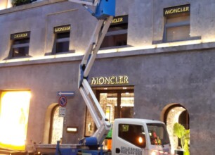 La notte è ideale per eseguire il tipo di lavorazioni come la pulizia dei vetri, che in altro momento potrebbero arrecare disagi al pubblico delle boutique.