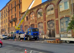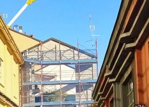 Grazie alla super gru da 50 metri l’operatore ha caricato i pezzi uno ad uno e li ha fatti passare sopra il tetto dell’edificio, fino a raggiungere la parte opposta, dove il nostro partner ha provveduto all’installazione e al completamento dell’impianto.
