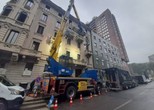La piattaforma elevatrice, gestita dal nostro operatore, si è mossa a supporto di una troupe pubblicitaria a Milano, proprio nel cuore della città.