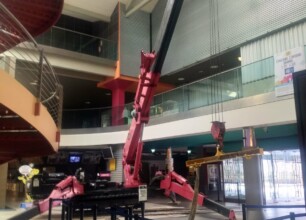 Ed ecco che con la nostra minigru abbiamo trovato la soluzione per sollevare questa automobile all’interno della struttura dell’edificio, e posizionarla in bella mostra per i visitatori e i curiosi.