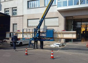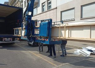 Il nostro partner, mobiliere, si è affidato a noi per l’operazione e ha seguito tutto in diretta: la nostra piattaforma aerea dotata di cestello molto ampio e apribile, ci ha permesso assicurare il top e di farlo arrivare al piano superiore e di sistemarlo all’interno dell’appartamento.