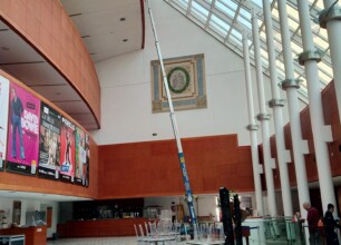 Per noi è stato un lavoro relativamente semplice, grazie alla collaudatissima scala aerea in nostra dotazione, piccola ma stabile ed elettrica, quindi ideale per operare in ambienti chiusi. La parte che ha richiesto più cautela è stata proprio legata agli oggetti da sollevare, perché un minimo errore avrebbe potuto comprometterne l’integrità.