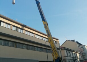 In seguito al sollevamento con autogrù, l’azienda idraulica nostra partner ha provveduto all’installazione e ai test.