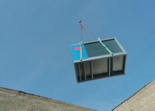 In questo caso i nostri operatori hanno caricato e sollevato sul tetto di un’azienda delle torri evaporative, utili a pulire l’aria dalla condensa.