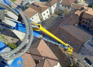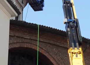 Gli spazi stretti e angusti intorno allo storico edificio non consentivano un facile accesso ad alcune parti dello stesso, l’utilizzo di un ponteggio sarebbe stato economicamente insostenibile, così siamo optato per una soluzione differente.